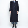 Long navy double breasted overcoat in a beautiful heavy 100% pure wool. flap pockets, fully lined.